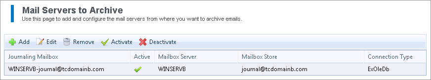 Use this page to add and configure the mail servers from where you want to archive emails.
