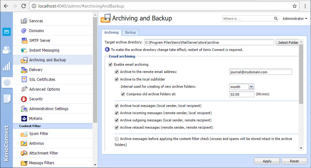 Kerio Connect Mail server Administrative access
